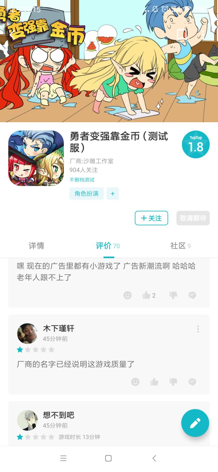 1.想要变强只能靠广告 制作组疯狂恰烂钱 十个按钮九个广告 你防不胜防2.游戏模式单一 但有趣的是广告种类不少 喜欢广告的朋友可以来玩这款游戏 绝对能学到东西3.这根本就是个未完成的游戏 打到33以后就开始卡关 战力上不去4.这游戏测试版和正式服游戏模式都是一样的 靠手速 毫无心意 更像是敷衍了事完成的作品综上所述 这游戏目前就是个未完成的广告模拟器 我为我之前对它抱有希望而感到愧疚 这种