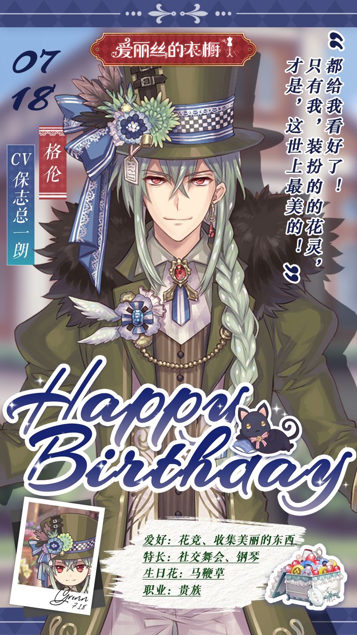 【7月18日】是格伦的生日~今年的生日愿望是莳花人,妹妹和我都能健康,快乐,幸福!!让我们一起祝格伦生日快乐吧~#今天游戏圈发生了啥 #发现好游戏 #游戏讨论 #爱丽丝的衣橱 #游戏杂谈
