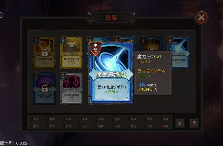 这游戏垃圾卡很多的,萌新只要知道拿这些牌就可以稳过源初。1. 前期输出卡:第一张图挑一张,火球和连珠火球都可以用,刚开始很缺蓝,拿一张回蓝光环过度很舒服,后期智力高了回蓝跟上后可以删了,富裕前期可以带一张,卖装备会多很多钱,钱多了之后删掉。2. 生存卡:魔力护盾和群体庇护选一张,前期捡到的防御卡也可以留着,打不过boss就放进技能栏试试,群体净化留着对付毒boss。但这游戏好像和月圆之夜一样有