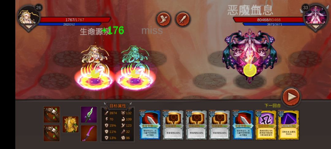 大家一定要学会用天赋里面的屏蔽技能组,我屏蔽了:主动,魔伤,回复三个,然后通关时候解锁技能基本不解,所以会重复出很多技能。用异国皇女的自带技能打第一大关,之后疯狂叠加攻击加上,碰到单手斧和匕首装备上,其他无所谓,戒指,幸运都无所谓,有就有。然后出现吸收属性一定要。极致属性也要,其他都没用。只要你用单匕首或者双匕首最终攻击超过1500,就可以打过最终Boss了,不需要吸收属性那个技能也行。我测试过好多次了。如果攻击在1000以下。基本打不死。