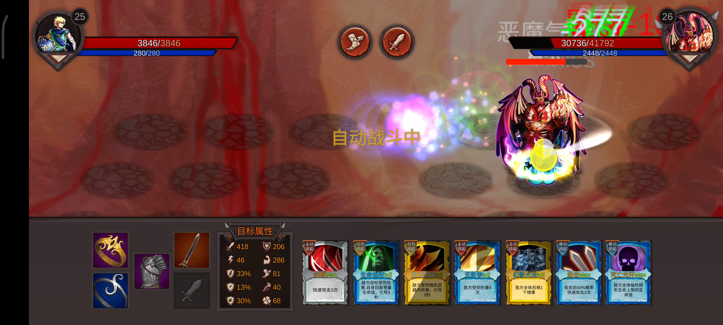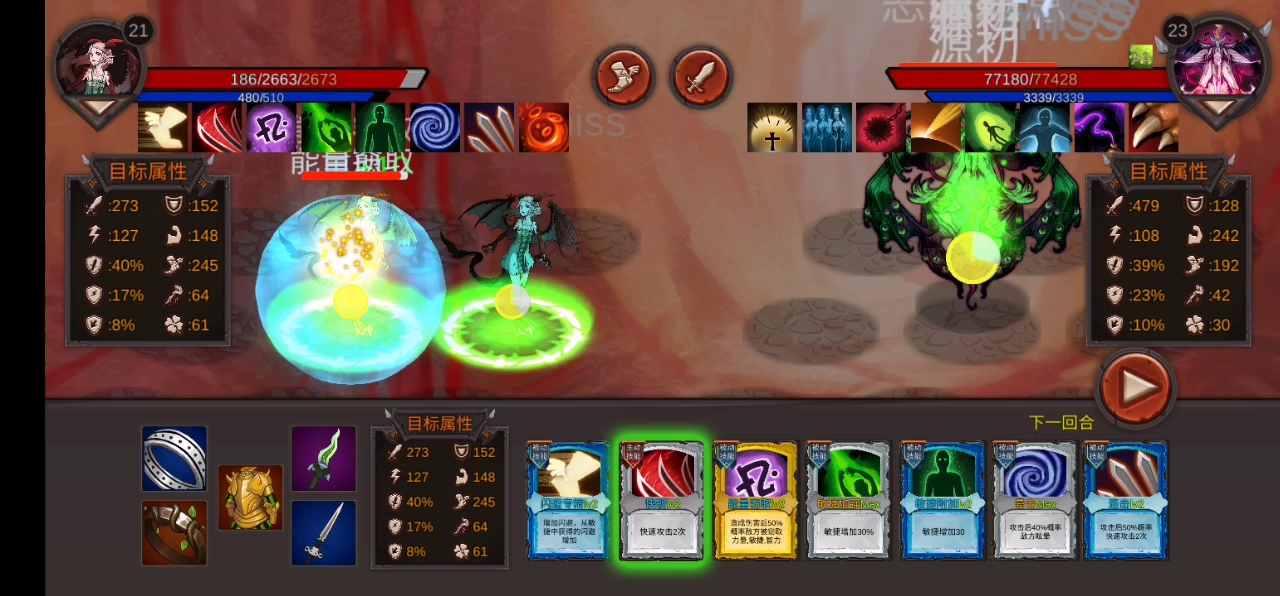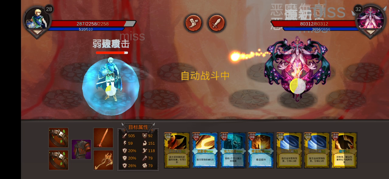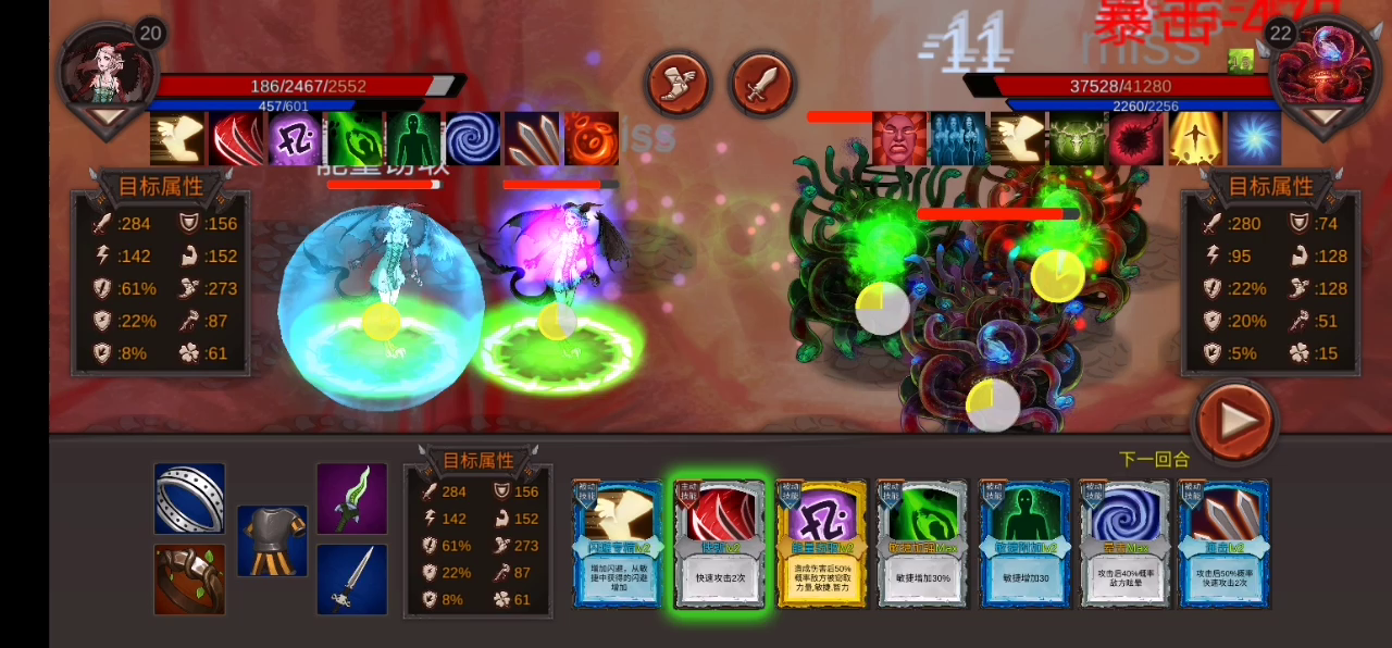 装备和卡牌需要搭配,魔力恢复,武器加成,这个游戏我已经打通关十几局了,卡片也快解锁完成,很简单的游戏。