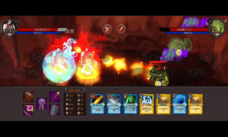 你就是带几个装备有燃烧的效果。进去的时候就尽量找有燃烧的装备。然后带一个生命吸血和一个金币伤害,金币伤害避免遇到boss烫不动,用来秒有回血的怪!