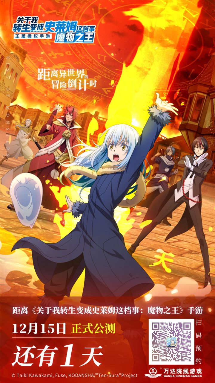 亲爱的转生史莱姆粉丝,由万达院线游戏发行,作者伏濑先生亲自参与监修,转生史莱姆制作委员会正版授权的同名动画手游——《关于我转生变成史莱姆这档事:魔物之王》(以下简称《转生史莱姆》手游)今日正式公测啦!鸠拉•特恩佩斯特联邦国正式迎接各位的光临!为庆祝《转生史莱姆》手游首发,国服自由城建系统、PVP擂台战、魔物军团……诸多新玩法强势来袭!游戏内还开启诸多公测限时福利活动!同时,万达广场上海五角场也