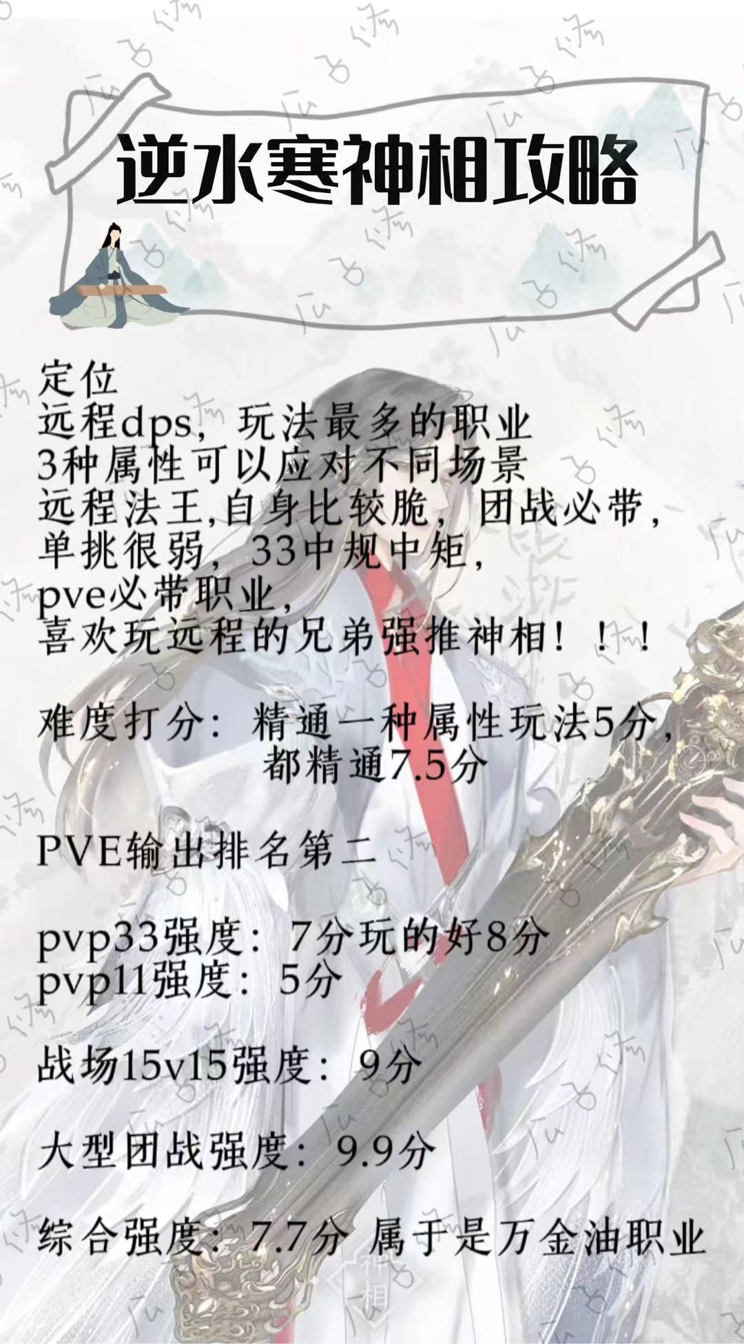 最近看到很多职业推荐贴,但是全是假大空,基本上你点进去就会发现,和二测开始之前发的差不多,基本上都是夸夸其淡的,这里给大家真情实意的推荐一下,没有二测资格且还没有决定选什么的玩家可以看一下(备注:那种已经决定好了选什么职业,并且听不得对该职业一丝贬义的就不要看了) —————— 首先笼统的说一下,目前逆水寒就业范围最广的还是经典的战法牧(铁衣,神相,素问),无论是pvp还是pve都可以就业,并且无