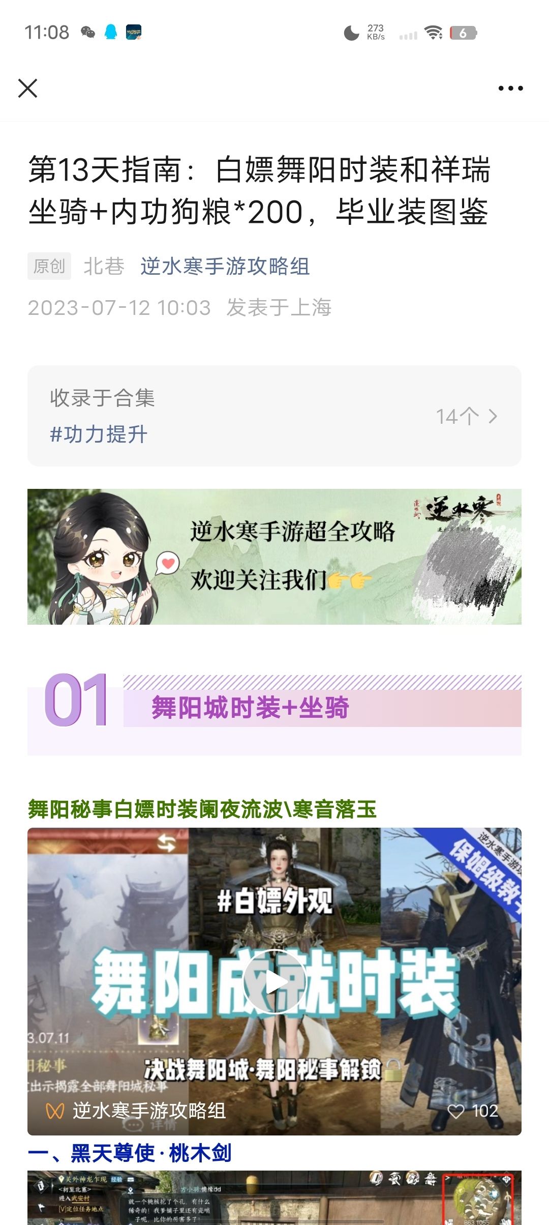 [逆水寒攻略]第13天指南:白嫖舞阳时装+内功狗粮*200