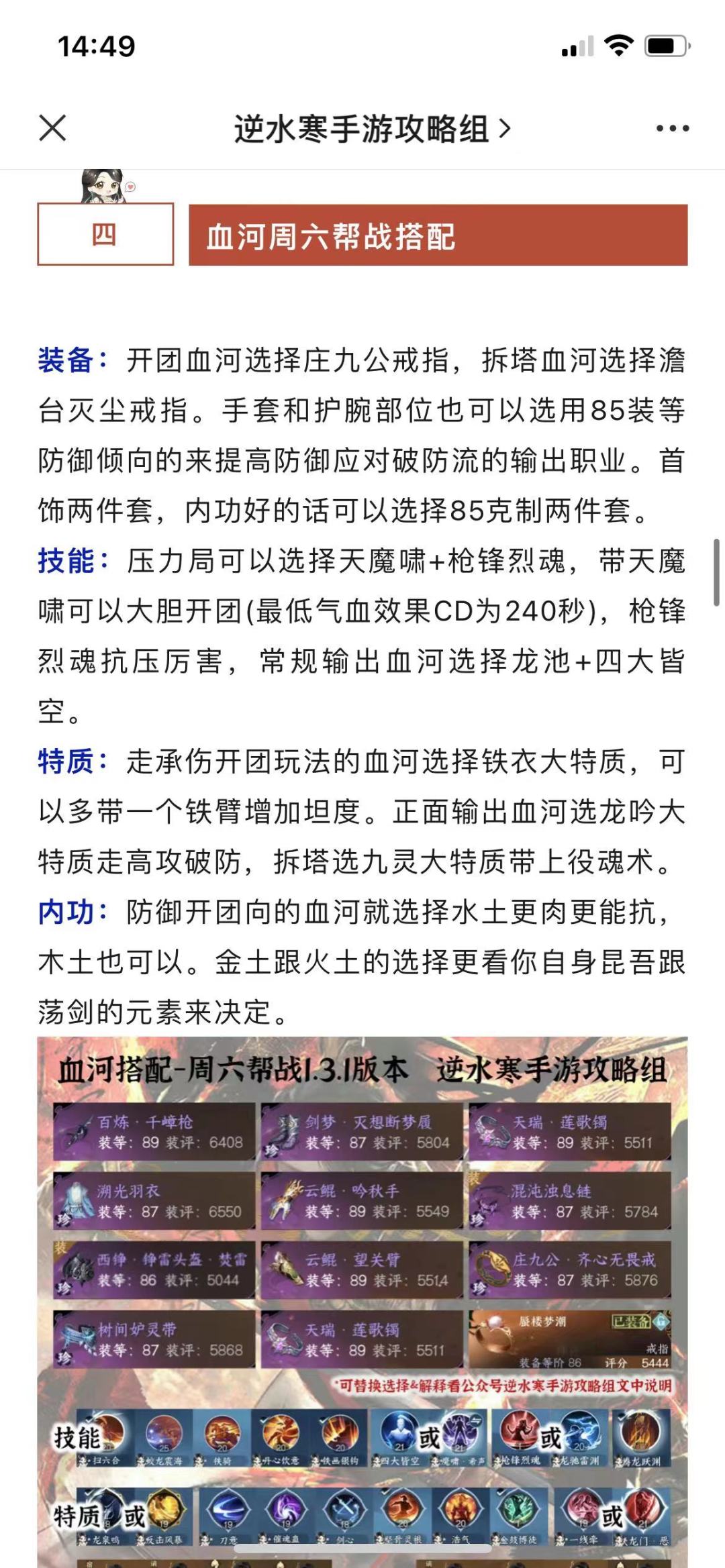 血河 铁衣 素问1.3.1帮会联赛最新搭配一图