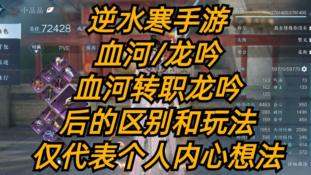 逆水寒手游:血河/龙吟,血河转职龙吟后的区别和玩法,仅代表个人内心想法。