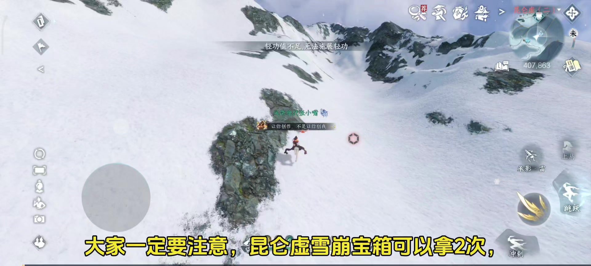 昆仑虚雪崩宝箱可以拿2次,隐藏成就【是雪........崩啊】解锁。