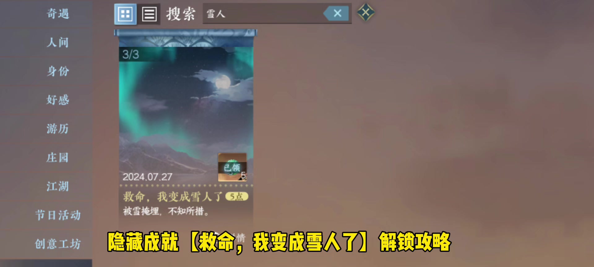 逆水寒手游隐藏成就【救命,我变成雪人了】解锁攻略