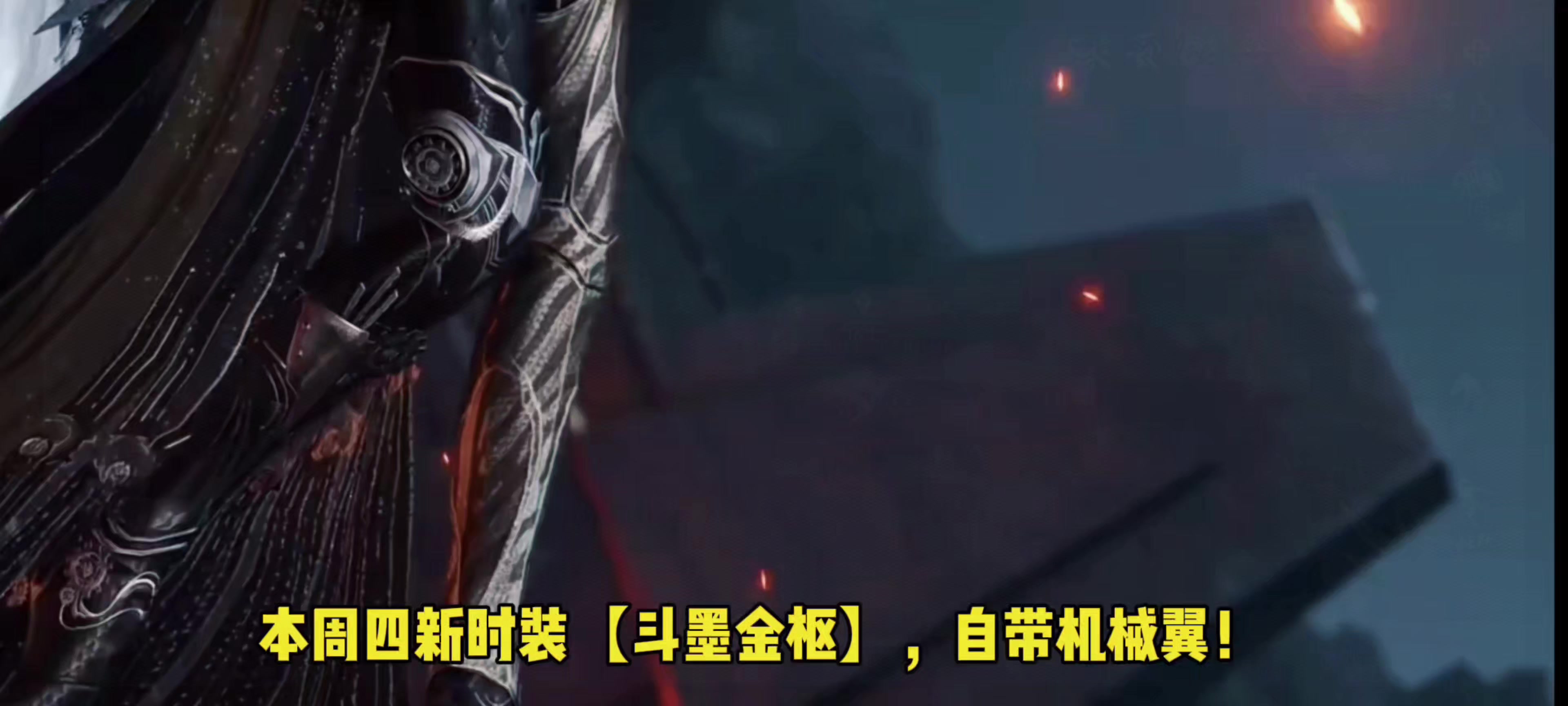 本周四新时装【斗墨金枢】,时装自带机械翼,同款稀有发型【琢雪
