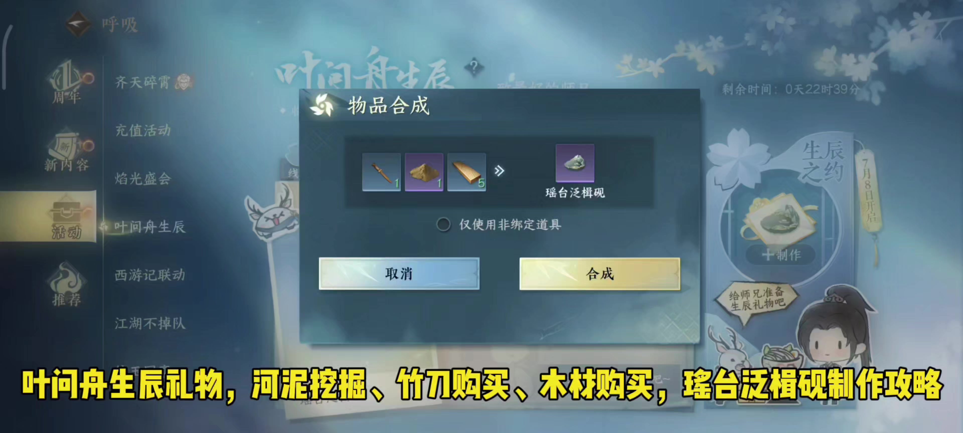 叶问舟生辰礼物,河泥采集、竹刀购买、木材购买,瑶台泛楫砚制作攻略来了#逆水寒手游攻略 #逆水寒手游 #游戏安利 #游戏推荐 #游戏日常