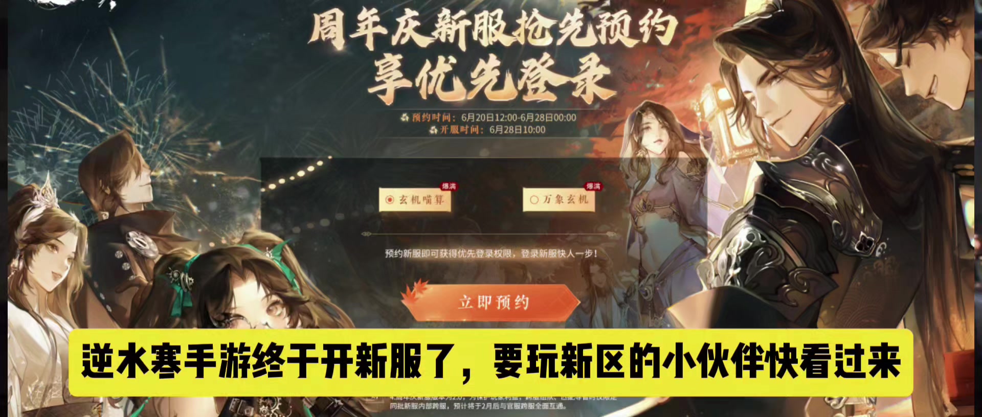 逆水寒手游周年庆新服预约开启,新服预约须知