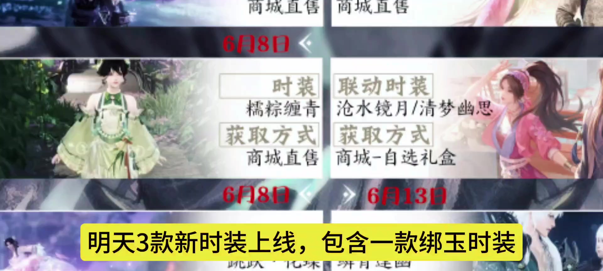 明天3款新时装上线,包含一款绑玉时装,联动时装+端午时装