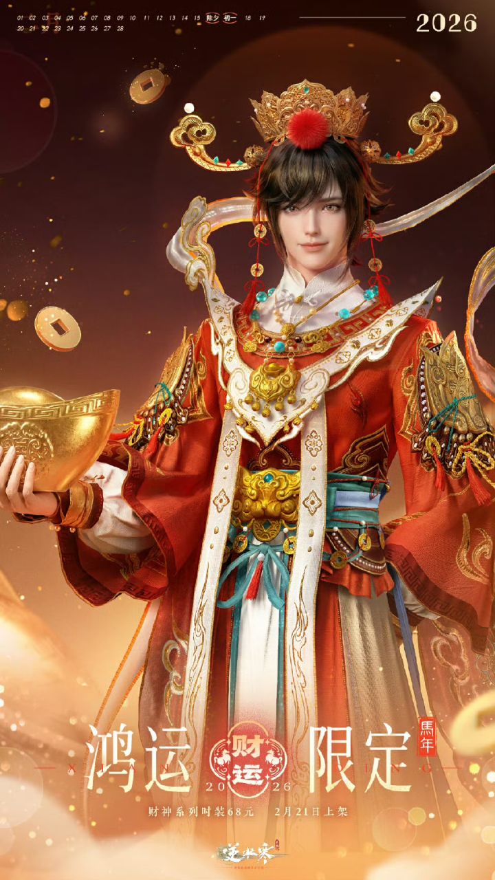 我恭喜你发财~我恭喜你精彩~🎶2月21日(星期六)至4月3日零点, #逆水寒手游 马年鸿运企划财运主题时装【宝禄纳财】限时上线!穿上它,大客户们走到哪,财气就跟到哪~