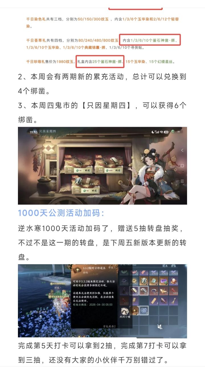 逆水寒手游1000天活动加码,赠送5抽转盘抽奖,新增65个绑凿获取合集,商城上架千日礼盒,本周四288块新时装模型!#游戏种草计划 #逆水寒手游 #逆水寒手游攻略 #发现好游戏 #游戏日常
