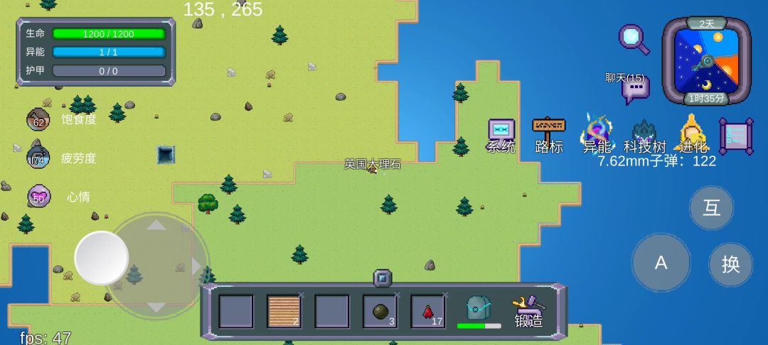☞开局依旧是收集木头石头,打开科技树解锁石斧(砍树挖坑用)弓(前期主要武器)铁块(后面造武器需要用到)铜块(子弹需要)