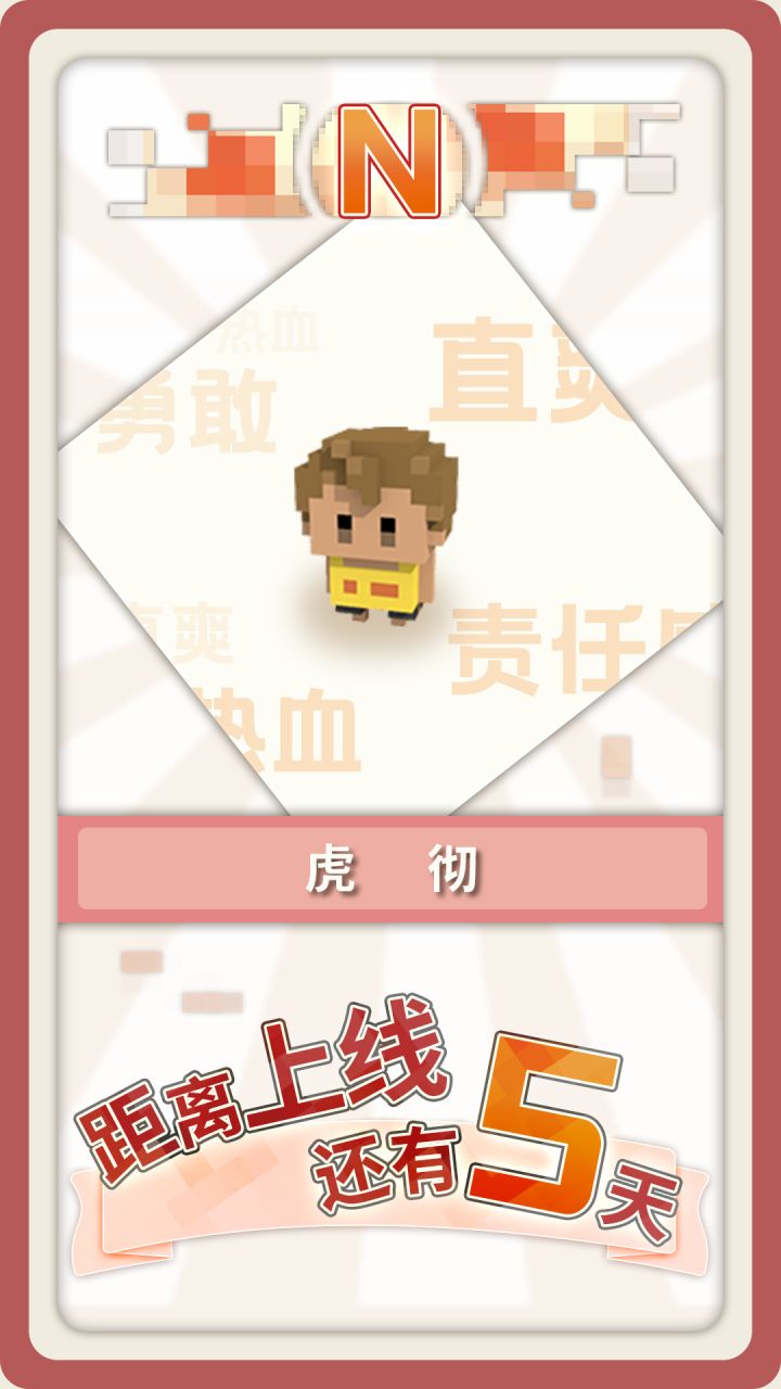 小伙伴们,变成大人也不要忘记还有5天正式上线~~~今天倒计时图片内的是游戏的主人公之一:虎彻他的人设标签:直爽,勇敢,热血小伙伴们身边有没有这样的男孩子呢大家可以在评论区踊跃发言!~在游戏上线之后,我们会从所有参与此活动游戏帖子的评论区中抽取一名小伙伴送出小礼品哦~最后,小龙君还是要提醒大家,不要忘记预约游戏哟~~~~