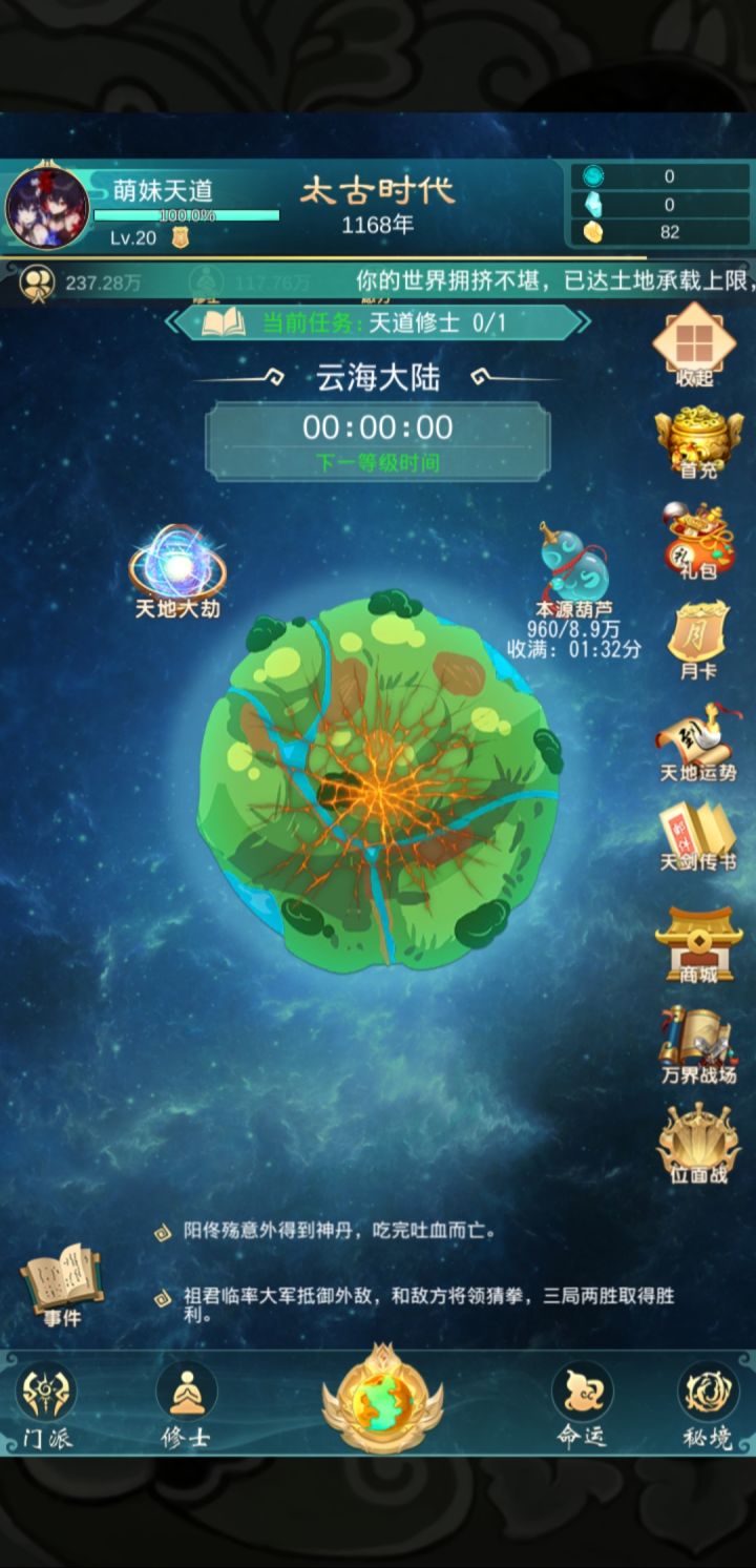 这根本和一代,不是一种类别游戏了!一代虽然粗糙但是好玩啊!你这个不好玩啊。而且你这界面太复杂了!收费系统是正常的,不动脑子照搬别的游戏也行,但是没收费到点子上。你这游戏收费需要靠的是什么呢?两点。一,是还是玩家之间互相战斗甩脸,“我的天道世界被打爆了,氪金修一下吧。不然就挂机等,爆肝修复。”二,是收集,氪金收集天道之子,俊男美女。“我这世界鸿运不错,抽卡 来个位面之子,五星!ssR修士