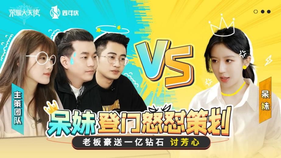 ● 呆妹为何“登门”怒怼策划? 老板为何豪送一亿钻石,莫非欲讨芳心?会议室PK现场为你揭露周年庆“福利内幕”。超多爆笑名场面,马上一起来围观! ● 继会议室“怒怼”之局暂时止戈,新的风暴即将来袭! 马上预约1月12日晚上20点《荣耀大天使》庆典直播,瓜分一亿钻石红包雨,赢抽锦鲤大奖,享全年12个月648元、1折礼包(大天使武器任选箱)等豪礼大奖,冲冲冲! ● 直播时间:1月12日,晚上20:00时