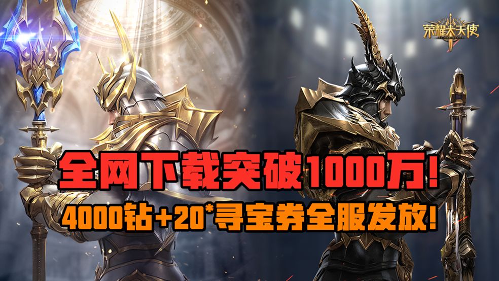 各位勇士: ● 《荣耀大天使》全网下载量已突破了1000万!看到越来越多勇士入驻勇者大陆,并肩作战,我们倍感荣幸!为答谢广大勇士对游戏的热爱,特此奉上全服答谢礼一份,感谢所有勇士的支持! ● 愿圣光永佑勇者大陆。 【全服奖励】 4000钻+20*寻宝劵 【面向用户】 全网用户 【游戏邮件发放时间】 2021年1月15日18点30分(已发放)