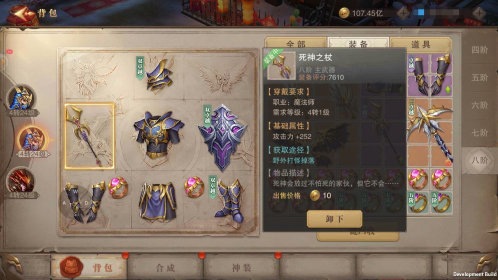 ● 大家好,我是你们的好朋友法爷。从测试开始玩这个游戏也已经有几个月了,大家是不是也迫不及待想要体验新的玩法内容了呢?本次版本更新后,随着魔王封印的破除,大家终于迎来了4转的正式开启,这次我先带大家先了解一下4转后的详细内容吧。 >>>全新装备: ● 跟之前的转生流程一样,完成转生任务之后跟转职教官(NPC)对话,即可得到三角色八阶普通装备宝箱用于临时过渡。当然大家都知道,双卓越装备推推普通关卡也