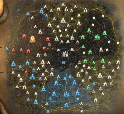 ● 异世远征地图分布 ● 远征玩法介绍:活动期间玩家主要分三个国度,每个国度都有自己的大本营,进入异世后能力将转换为异世能力,属性将发生变化,退出异世即可恢复正常。 你可以在占领城池移动,开启城池战斗可对占领城池相连的城池发起战斗,击败守城BOSS即可占领城池。异世内无法直接发生战斗,需消耗能量值进入异世战场中1V1战斗,死亡将耗光携带的所有能量值。 能量值为0无法继续战斗传回基地,能量值随时间恢
