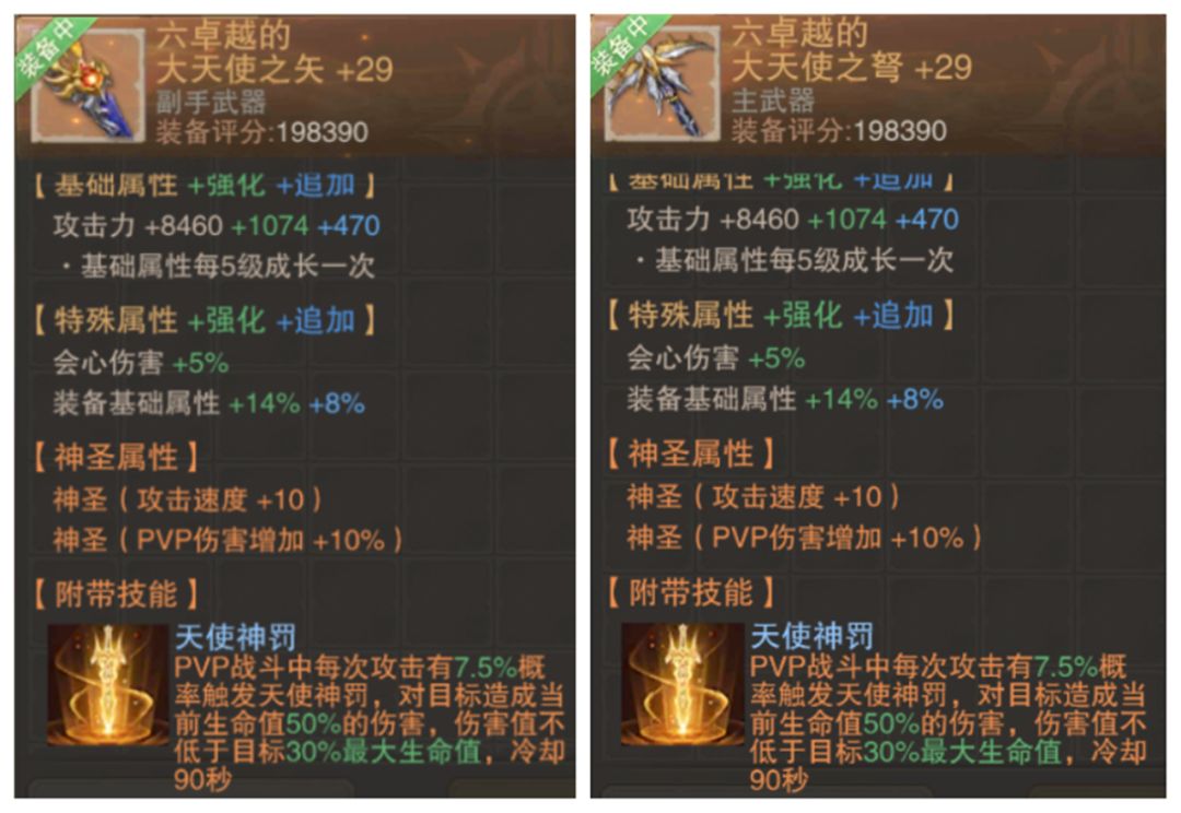 ● 大家好,这里是大天使攻略组,我是荣耀の法爷。这一次,法爷我大显神通,找了几位哥们,来给大家抽一波玛雅寻宝试试水。让我们分析分析,究竟,这个玛雅寻宝的大天使武器,值不值得抽。 图1:三职业的大天使主武器展示 ● 和普通装备一样,大天使武器也可以通过卓越进阶来不断进化,而每次进阶所需要的材料和普通三卓越装备一样,都是需要一把额外的同类武器(两把同样部位的三卓越大天使可以合成进阶为四卓越),而目前游