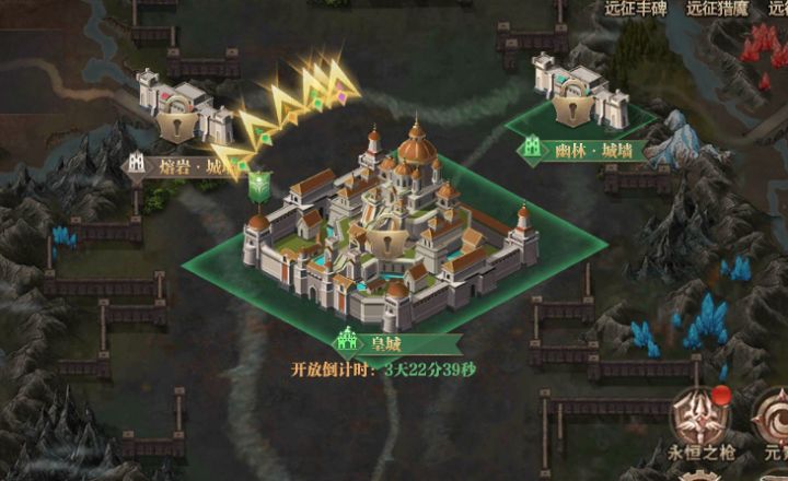 荣耀大天使皇城争夺战玩法介绍:皇城争夺战开启时,三方阵营全体成员都可参加皇城争夺战,活动期间普通城堡不能被攻打,但在地图中间区域的城墙与皇宫变为可攻占状态,三座城墙与皇宫路线相连,需要攻占城墙后才能进入皇城中进行战斗,获得皇城归属的阵营一方可获得精华,号角等奖励,,每日可采集高级宝箱。开启攻城后我们可以从基地出发,首先每次攻城是需要消耗能量值的,出发时会提示携带多少能量值,能量值也是会随时间恢