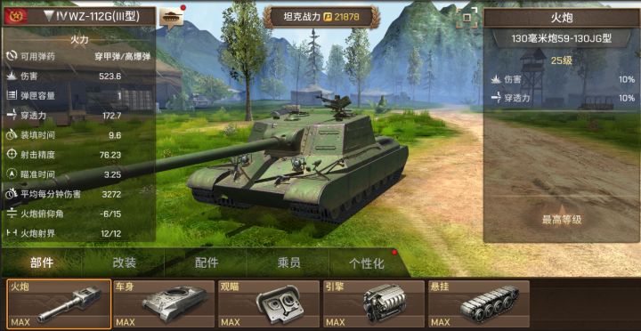 WZ-120称为59式坦克是中国的国产第一代主战坦克。中国在1956年获得苏联T-54A坦克技术资料后在苏联援助下进行仿制生产,通过技术引进,实现坦克国产化,初步建立起中国自己的坦克工业体系,是中国第一款大量生产的坦克。类型:中坦级别:Ⅴ级获取方式:58级解锁价格:8500000金币三改满级属性