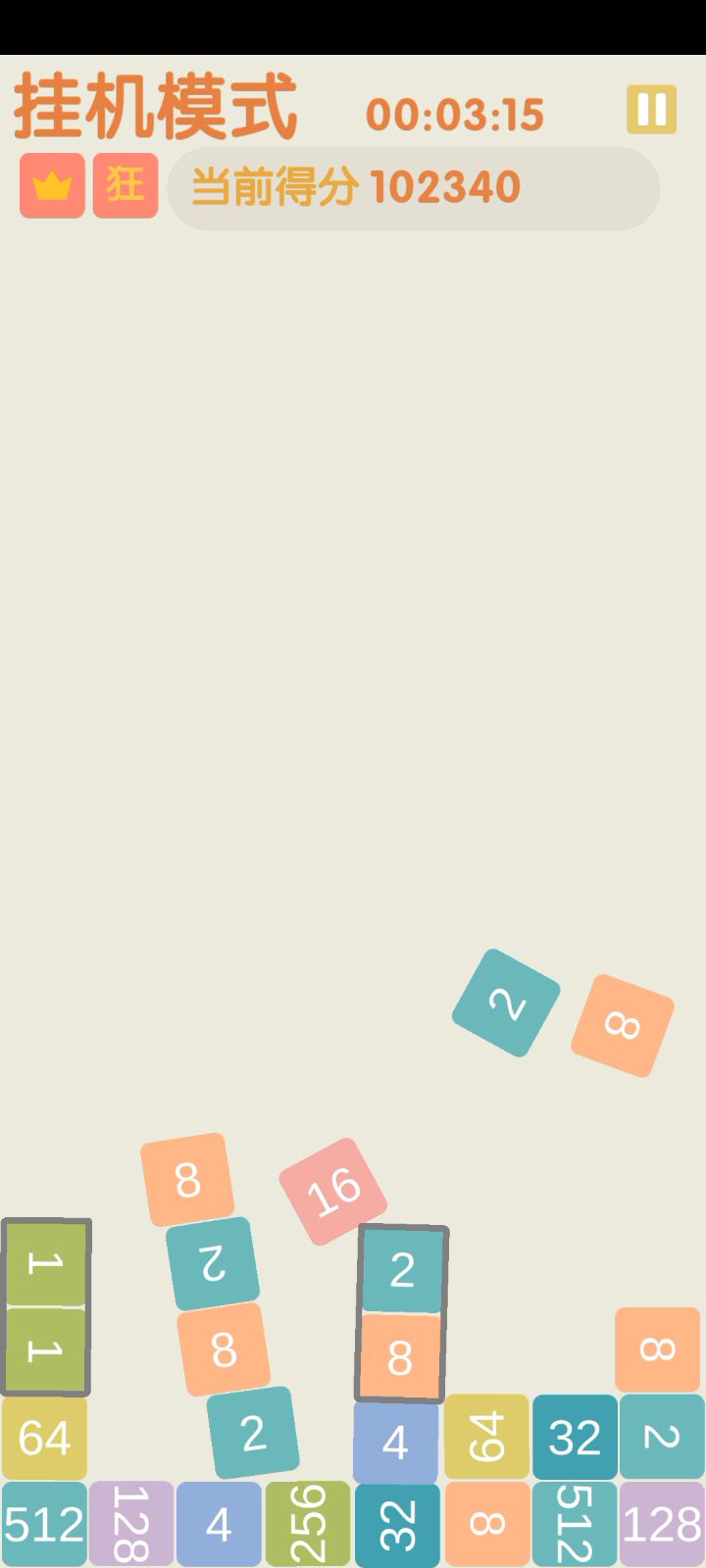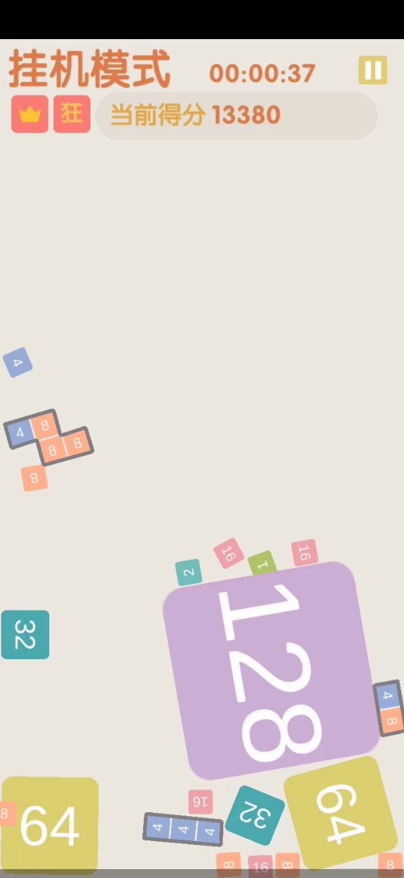 rt,就在那挂机然后故意设置成一个很夸张的螺旋爆炸参数,这是18分钟的三张图差不多每过六分钟稳定炸一个2048(然后14分钟的时候不知道为啥我的4096被炸飞到屏幕外然后消失了……)但是看着满屏飞来飞去和右上角无限重置但就是不满的红色压力条莫名其妙的爽