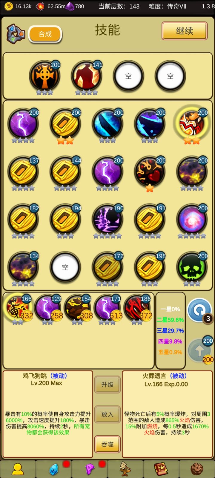 P3是当前属性,可以说这个属性只要不遇到bug,可以一路碾压传奇六难度,具体能到多少层的话,看我啥时候死,接下来就是介绍挂机条件: