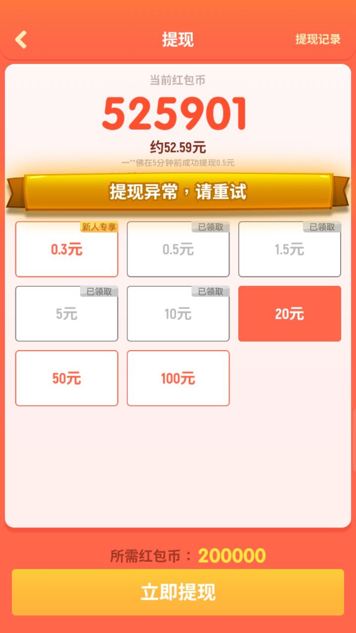 车子等级够了,但20的额度提不出来,一直提示重试。