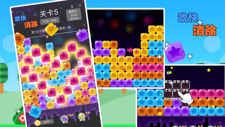 经典模式一共包含13个关卡,关卡由易到难:星星颜色逐渐增加、星星数量逐渐增加、通关积分逐渐增加。玩家通过点击2个以上相邻的同色方块消除方块并获得积分,方块消除后不会再增加,当屏幕内没有课消除的方块时,本关结束,若获得...