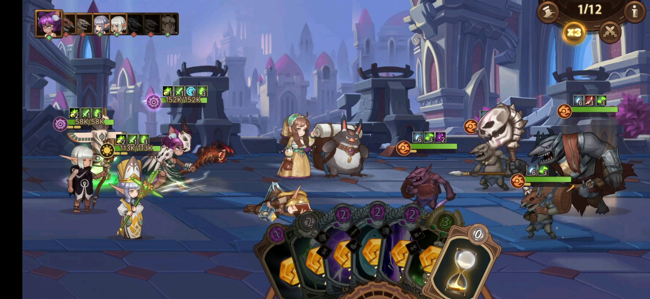 抄的论坛里面的作业,刷了一晚上技能,大约七八次,只遇到过一次扭曲不消耗回合,一次灵魂不消耗,最后一把终于人品爆发,五回合天使加1费不消耗回合扭曲,真的无脑过,练度才4银,但是弓速度得40左右,修女必须比小怪快得30左右,弓折翼修乔丹就解决了