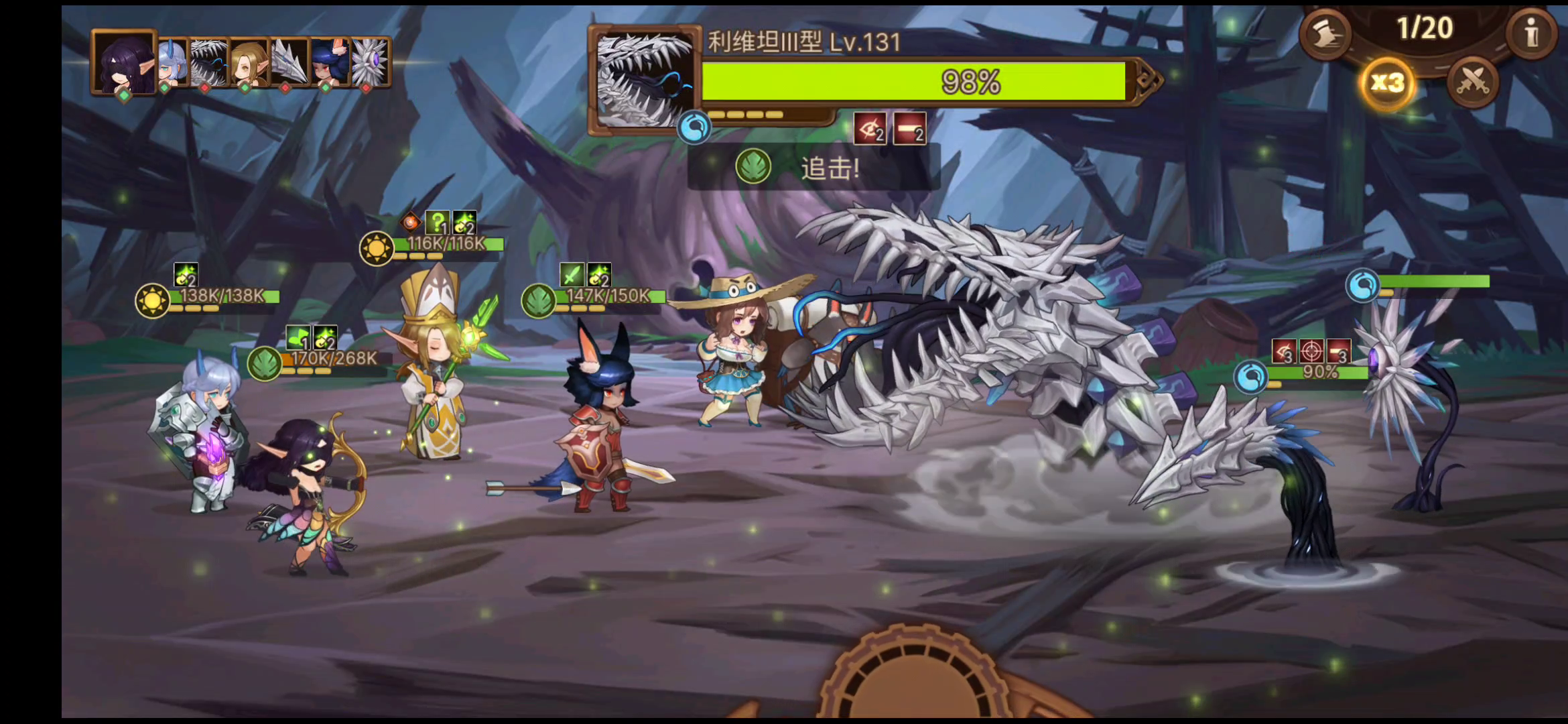 boss一形态:boss速度37左右 开场aoe糊脸,90暗抗的情况下大概是35w伤害左右,如果速度不够快可以主堆一个速度特别快的圣骑加团体速度,先手给boss减攻击 ,aoe两回合一次,百分之三十血以后进入二形态 boss二形态:二形态