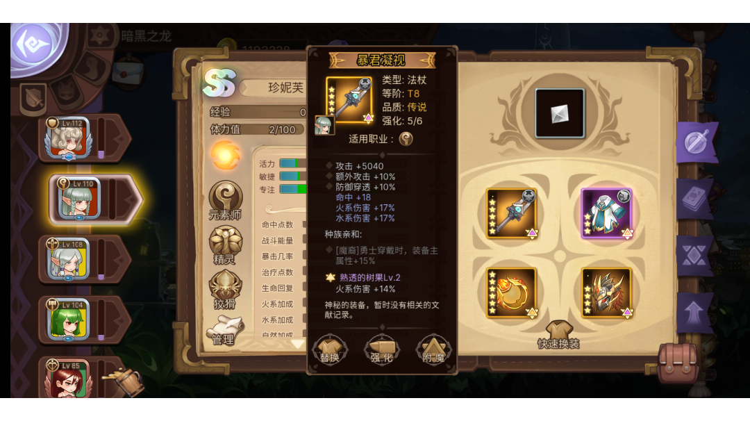 前面小怪用无敌盾,第二回合狂战秒,法师老实当辅助,啥技能都不要拿,加命中就行。实在要拿,拿个火盾,清全场状态的。剑盾弱鸡,装备分解。 一层全清,二层精英看状态最后清,问号最好最后访问。酒馆可以吃点能量酒,主力吃加伤。 命中感人,差点超回合