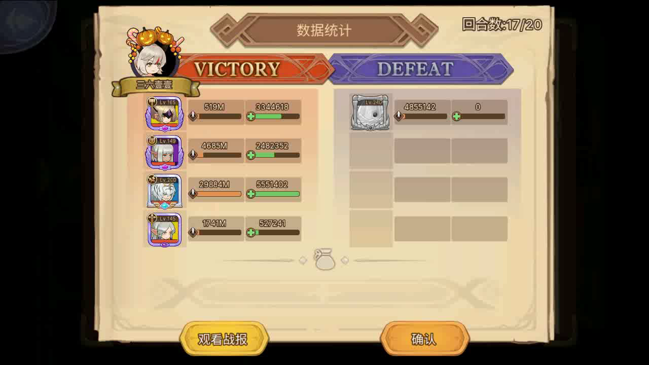首领基本第一次会释放光能子弹(目标选取和修女天使一样),有时候会释放惩戒光线,脸黑就认! 这阵容只拿白虎和妮妮技能,修女拿个天使以防不测保一次妮妮或者白虎,其他技能都可以不要,罪赎死了不要拉起来!我首推的时候白虎43w、妮妮48w左右!