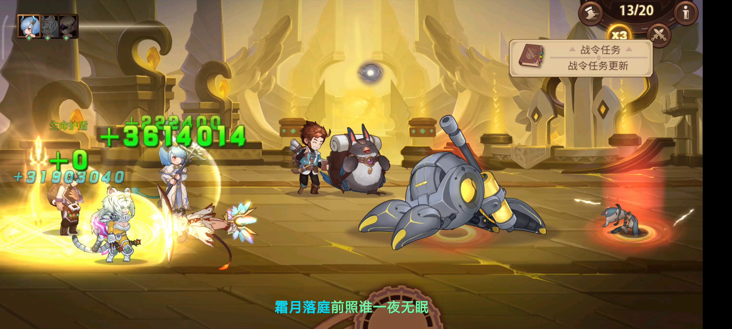 巫师没留火种。用黑光,白虎,星角,妮妮打的, 核心打法:白虎三爆刷新天使保护修女,白虎,黑光,,白虎叠海德拉,,我先打的前面个,,感觉先打后面个可能简单点,法师工具人😹上了buff就躺,没了buff拉起来加上继续躺