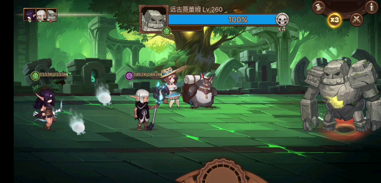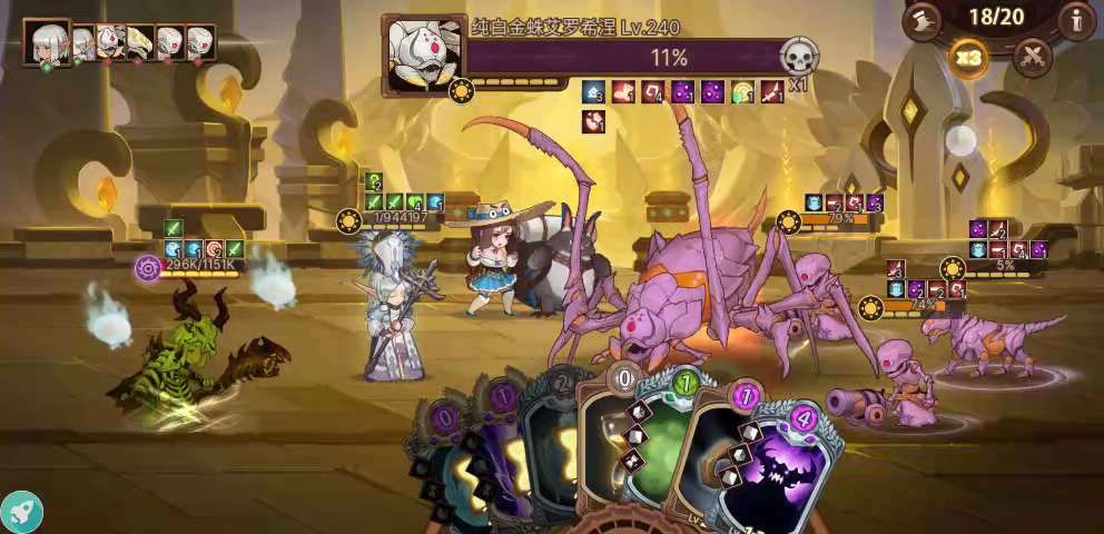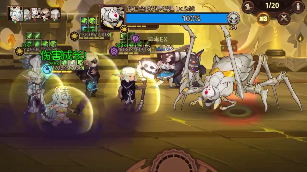 本来不抱希望了,小怪一死,boss就会驱散,毒伤叠不起来,boss还会回血。试了几盘发现尽量多磨血多攻击boss,可以每5个回合打掉一条血,就这么硬着头皮打,居然通关了nice!