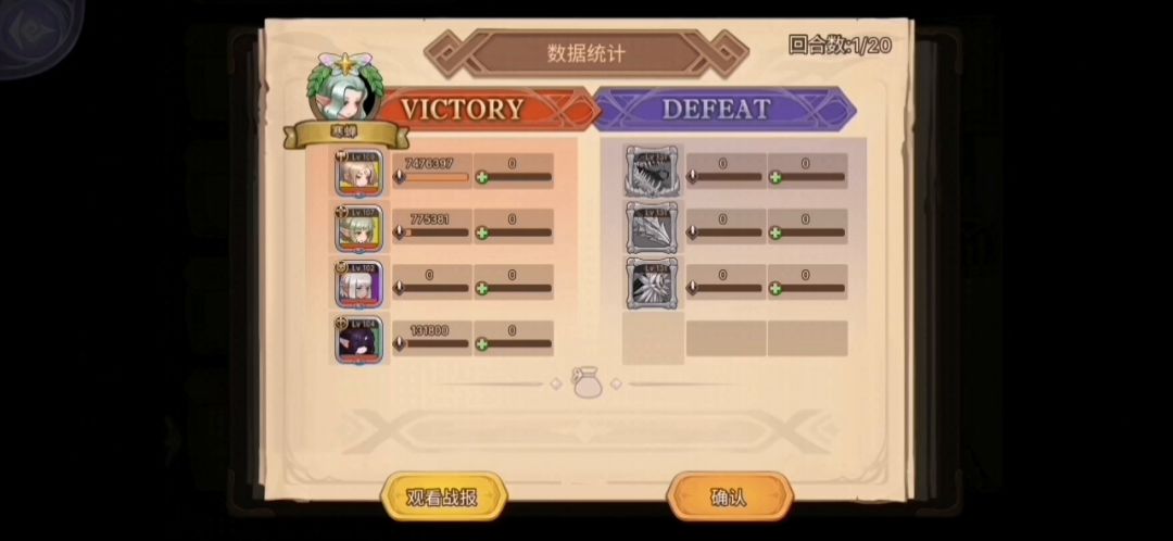 今天下午运气不错,在通关535之后2个星期,终于通关了545;下面就今天通关的一些心得体会记录如下:一、首先上面板;二、通关要点如下:1、545的通关核心和535一样,还是弓箭手(我用的是白夜,也有推荐用盲眼的,考虑到我的白夜+3,盲眼+0,所以优先白夜了。)其他妮妮、罪赎、海蒂都是挂件,这里的妮妮还是有一定作用,就是在最后硬抗BOSS一击不倒地后,boss自己挂了,这样就算是胜利了。2、