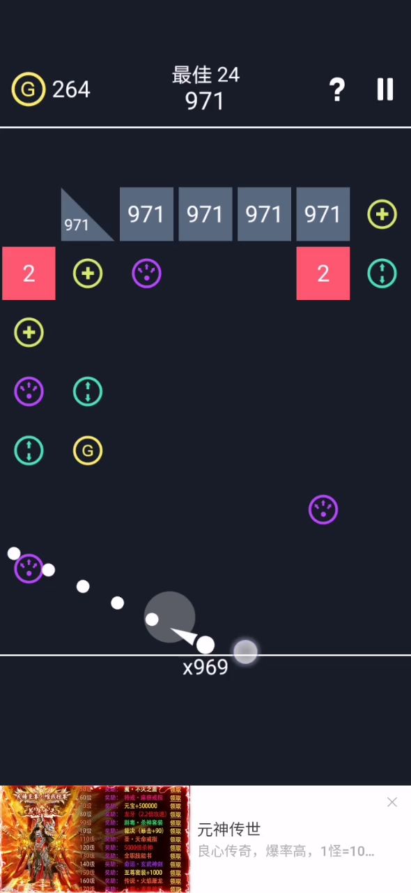 之前我玩过一个版本,弹的太久可以一键全部回收,收集到的钱还可以买球的皮肤,球的皮肤还有大有小的