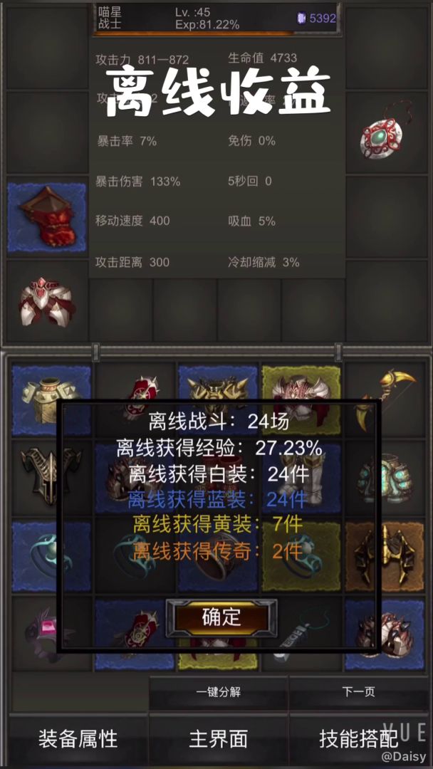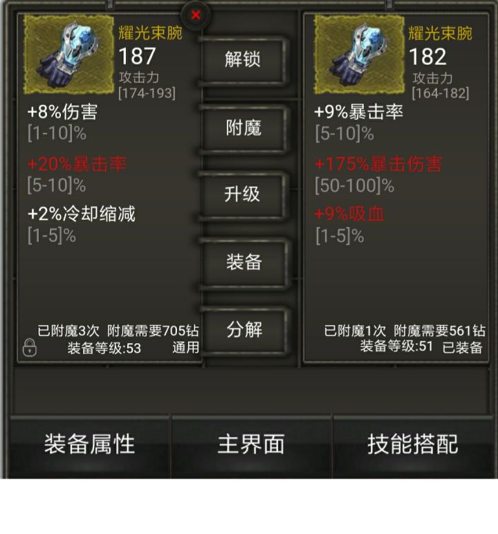 5月31日更新:*整体加强装备,每件装备增加固定属性值;*增加附魔功能,刷新装备属性;*增加装备锁功能,锁定不想被误操作的装备;*优化技能选择功能,选择技能后可再次点击取消选择;*更新整体UI。