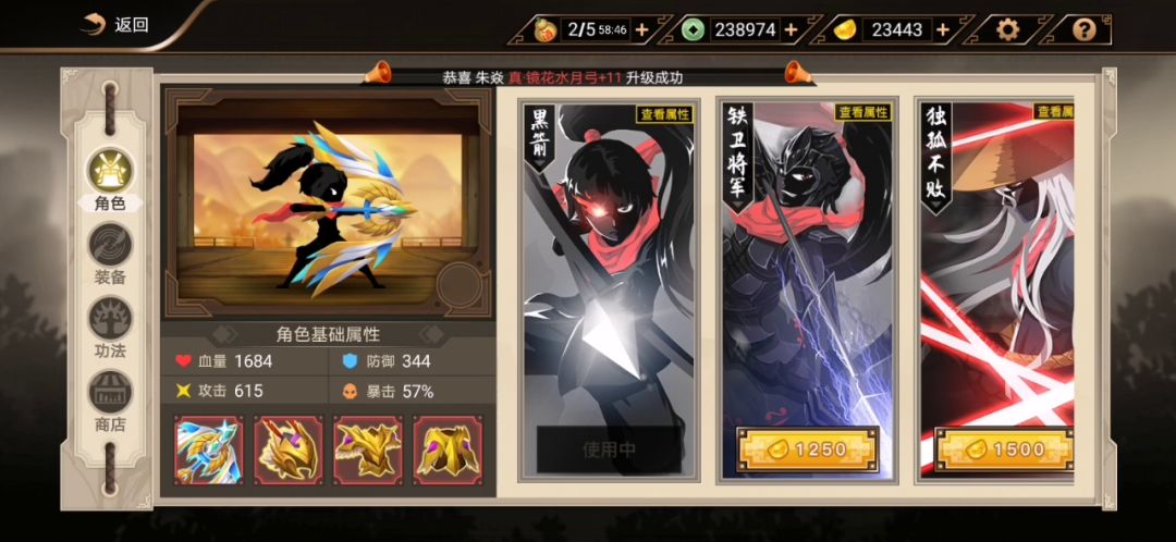 本人是一把王者弓+40=56%暴击率功法+8%暴击率初始角色没有暴击率加成如果不计算功法的加成,应该是56%的暴击率,计算功法加成是64%暴击率,可是实际上这玩意儿是57%!!这是个什么鬼?更奇怪的还有后面,初始角色和角色“羿”攻防暴属性都不一样,可是如果切换两个角色,可以看到攻击防御都变了,但是暴击没有变!!这是社么意思??我能想到的唯一一种解释方法,就是这个游戏的暴击数值同时计算角色