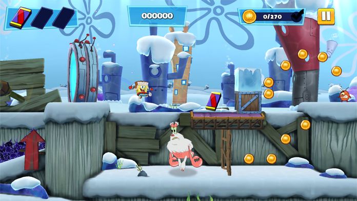 比基尼海滩有大麻烦了!邪恶的“主谋”喜来登·J·痞老板再次策划了一个窃取美味蟹堡秘方的计划。这一次,他召集了自己的堂兄妹大军,要抓走海绵宝宝所有的朋友!在比基尼海滩史上最史诗级的侧滚画面任务中扮演海绵宝宝,一路闯关!探索、收集金币和锅铲,并粉碎障碍,同时海绵宝宝会争取时间拯救他的朋友、击败痞老板的手下,然后夺回秘方。留意比基尼海滩上您最喜欢的居民......您永远不知道自己会碰到谁!