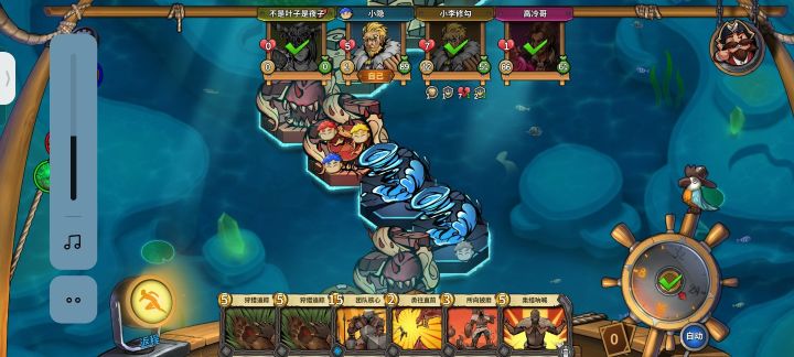 ◤玩了几个晚上了,玩的挺爽,但缺点也有点明显。除了新手困难,还有严重的UI问题,玩下来眼睛很累,本身配色就比较鲜艳,卡牌和buff的说明又挤成一堆,字号还比较小,空间利用率感觉很低。还有就是对于长按头像显示印记的设定,建议显示出来的方框固定在某个位置,上方头像换位也不会有影响。另外就是希望对于玩家自己的标志能更明显一点。