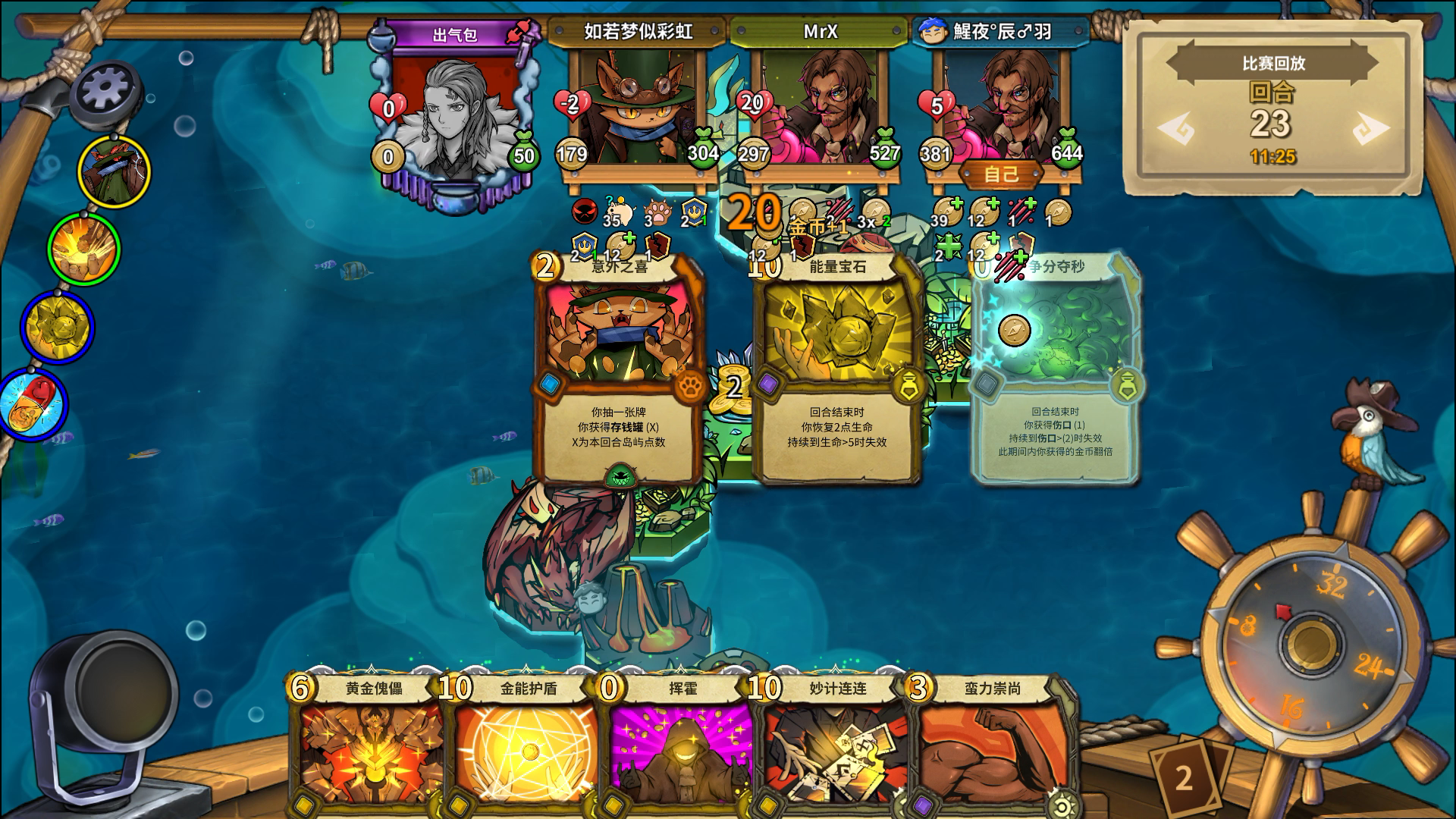 一切都是运营,整个一阶段基本没用过杀人卡,第二阶段一开始就直接挂剑!第二回合减甲,瞬秒!第二阶段两个红岛都刚好是我的岛!