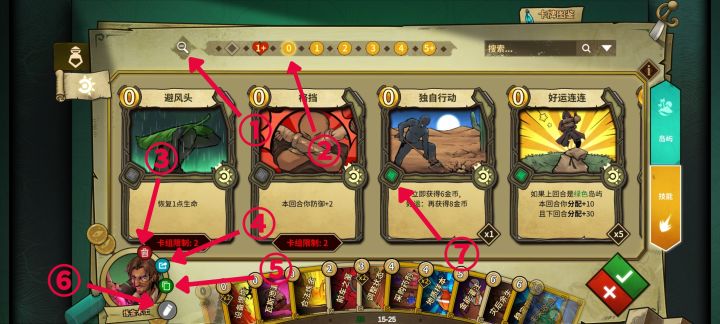 (以招式卡为例,岛屿卡同样)①:放大缩小(图二)②:按卡的价格进行归类(0元归在一起,1元归在一起…)③:将你弄好的卡删了(图三)④将你编辑好的卡列个小表(图四)⑤:将你编辑好的卡做成编码(图五)(编码可以分享给别人,别人就可以借编码来获得你做的卡组)⑥:给人改名(图六)⑦:不同颜色代表不同等级,分解时价钱不一分解:(以第二张图左下角“纠缠不清”为例)1.当左下角有“新”字时,无