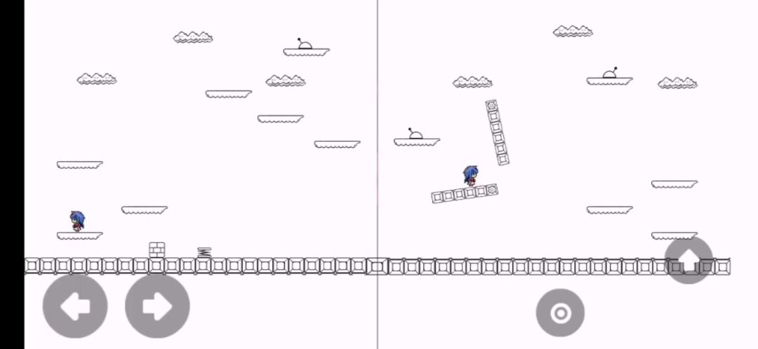 社区怎么可以空无一人呢?我来给这里增加点人气而,目前只有一关,所以第一贴就是这唯一一关的攻略,如果你能做到的话,期待下一关吧。游戏背景不提,游戏内容大致是一个镜像的世界,两边的道具是相关联的,可以拿出来的;但是,镜像不是实体,只能帮你拿出来,它自己用不了。第一关攻略总结:右我拿砖块,交给左我;左我在左二层浮空板左端放砖块,跳上三层拿弹簧;中界线放弹簧,左我拿砖块,踩弹簧跳上四层,跳上六层,六层