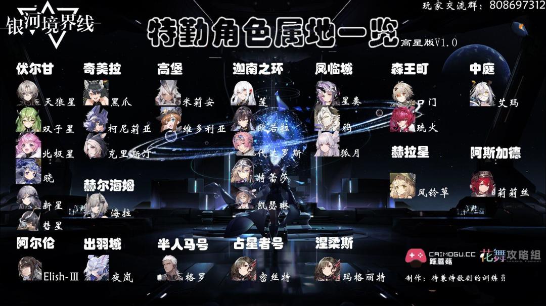 总结了一下公共联络增加5、6星特勤几率的对应通讯员。并附其他大佬的公招地点属地图供大家参考。 结论: 弧月:天廻6、夕雾5、黑羽6、天音6、鸦6、琉火5、弧月5、夜岚6 天狼星:北极星5、晓6、Elish-III6、彗星6、双子星5、天狼星6、新星5 晓:晓6、特蕾莎5 赫柏:赫柏6、玛格丽特5、海拉5 黑爪:鵺6、克里斯汀6、柯妮莉亚5、黑爪5、晚钟6 新星:鵺6、斯薇法5、格罗5、Elish-