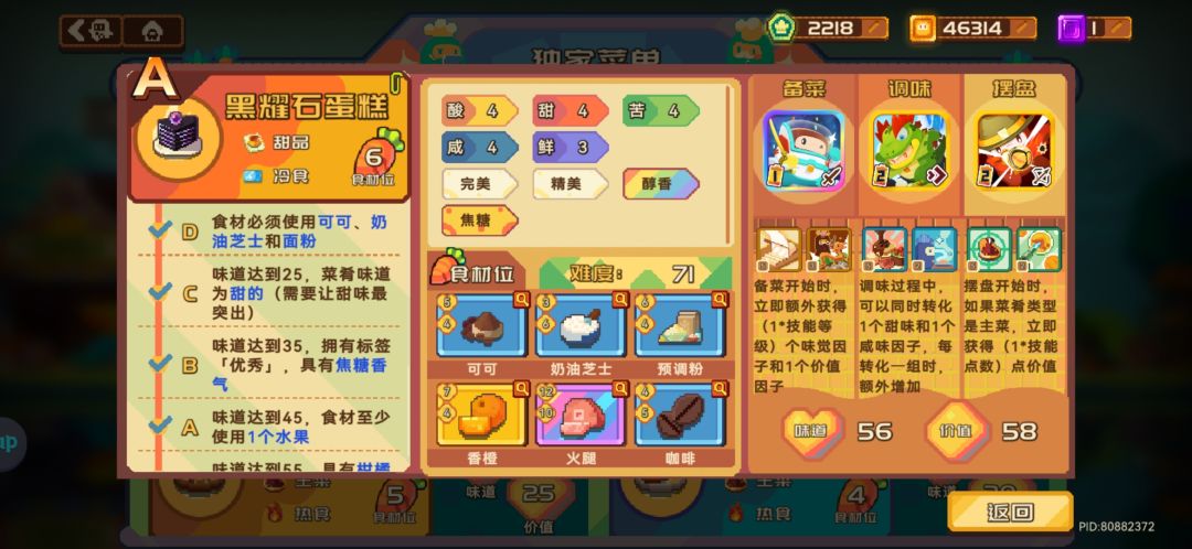 我玩这款游戏比较喜欢这个做饭系统,可以做各种各样的菜品,满足我那富有成就感的内心。 新手玩这个模式勒!要注意食堂升星条件!在经营左下方!做菜的时候要看看它所需要的要求!然后添加相应的食材。不过这样一般也只能做到B级菜品。想要A级菜品或以上,需要给对应条件的角色升级和~一些彩色级食品(一般刷出来有点难),升到5级会有第二技能!萌新们记得看好技能作用。 菜品的味道和价格影响到顾客评分! 建议新手快速将